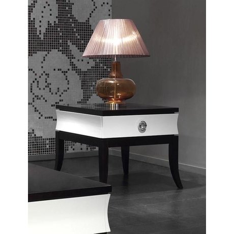 Оригинальный приставной столик на высоких, слегка изогнутых ножках выполнен в стиле Ар деко. Отделка перламутровый лак цвета слоновой кости, шпон цвета горький шоколад. Оснащен 1 выдвижным ящиком. Ручка из нержавеющей стали. Сделан из высококачественного МДФ и массива дерева. Плавность и четкость линий придают дизайну приставного столика классическую утонченность и изящность.