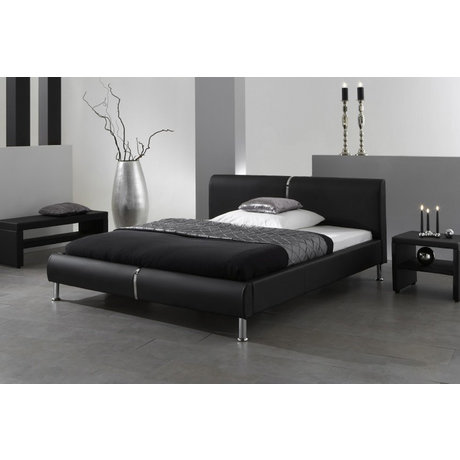 Кровать Valentin - это идеальный вариант для спальни с современным минималистичным интерьером. Четкие линии и простая форма акцентируют оригинальное сочетание матералов (высококачественная мягкая искусственная кожа и декоративная металлическая вставка) и интересное цветовое решение: благородный оттенок черного подчеркнут холодным металлическим блеском. Основание кровати установлено на металлические ножки циллиндрической формы. Мягкая обивка и скругленная форма царги позволяют сгладить острые углы и делают кровать максимально безопасной. Кровать укомплектована ортопедическим реечным основанием.