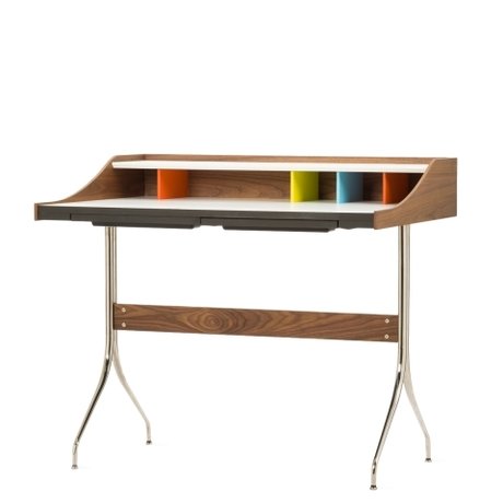 Дизайнерский рабочий стол Nelson Desk был изготовлен Джорджом Нельсоном, который представил этот оригинальный предмет интерьера в 1958 году. Отличительными особенностями описываемой модели является тот факт, что ее корпус выполнен из массива натуральной древесины. Следовательно, такой стол прослужит максимально длительный срок службы за счет особенно высокой прочности и долговечности материала. Среди основных удобств данной конструкции стола следует отметить наличие отверстий для доступа ко всем основным электронным гаджетам, в частности, к ноутбуку, мобильному телефону. Помимо прочего рабочий стол Nelson Desk оснащен удобным пластиковым ящиком для личных канцелярских принадлежностей.