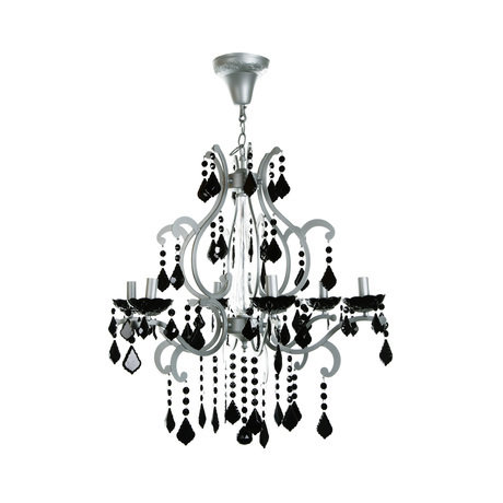 Грациозность этой люстры позволяет использовать её в любом интерьере. Роскошный декор создается хрустальными подвесками черного цвета разных форм и размеров, расположенными на трех уровнях. Открытые плафоны оформлены лампочками, подобными свечам. Плавные линии, красивая расцветка и оригинальный дизайн будут радовать вас, и дарить хорошее настроение. Ведь эта люстра не просто освещает пространство, но и украшает его.