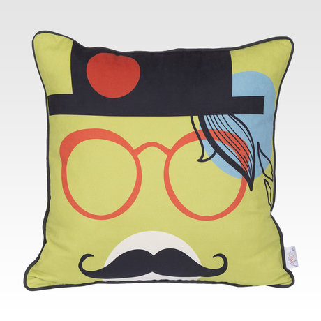 Декоративная подушка оливкового цвета с одной стороны и салатового с другой, лицевой в прямом смысле слова. Абстрактное изображение лица здорового сыграет в поп-арт интерьере или сюрреалистическом фантазийном.