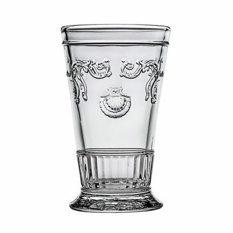 Стакан выполнен в романтичном винтажном стиле. Его поверхность украшена рельефными узорами растений. Низ аксессуара оформлен таким образом, что создаётся ощущение, что верхняя часть вставлена в отдельную в дополнительную ёмкость.