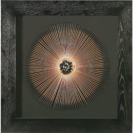 Настенное панно "Рождение сверхновой" поможет наполнить Ваш интерьер стилем и индивидуальностью. Декоративный элемент из металла цвета бронзы помещен под стекло в массивной раме.