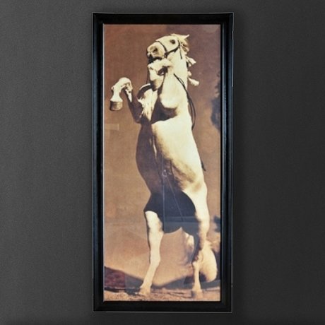 Картина с изображением лошади Стенли. Выполнена на бумаге и помещена под стекло в раму из натурального черного дерева.