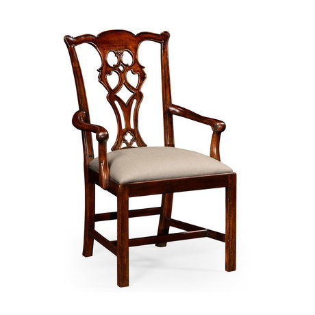 Стул выполнен в chippendale style, на спинке стула фасонный знак с готическим четырехлистником. Высота ручек: (68.6 cm)