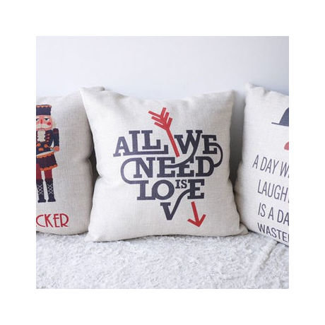 Чехол для подушки с принтом- текстовкой "All we need is love". Перефраз знаменитой песни группы The Beatles.
