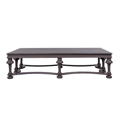 Такой кофейный столик прекрасно впишется в интерьер загородного дома. Просторный и невысокий, он имеет восемь фигурных ножек, соединённых изящной проногой, что придаёт ему оригинальность. Как, впрочем, и красивый серый цвет этой модели, столешница которой выполнена из брашированной древесины.