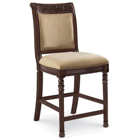 Барный стул в отделке хна с мягкой текстильной обивкой сидения и спинки.