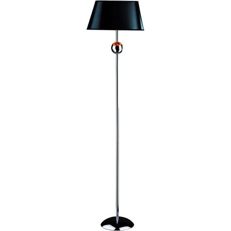 Стильный торшер в стиле ар-деко на металлической штанге с черным абажуром отлично впишется в современный классический интерьер. Подойдет для уютных домашних помещений - например, гостиной или спальни.