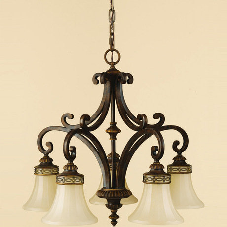 Изящная люстра с металлическими изгибами в стиле французского прованса украсит вашу гостиную. Коричневое покрытие с легкой потертостью прекрасно сочетается со стеклянными плафонами кремового оттенка.