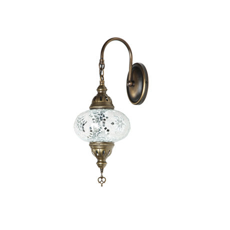 Настенный светильник из Турции в ярко выраженном восточном стиле выполнен из латуни, а фактура белого плафона повторяет узоры нежнейшего вязанного кружева. Ручная работа. 4 варианта цвета мозаики. Латунь.