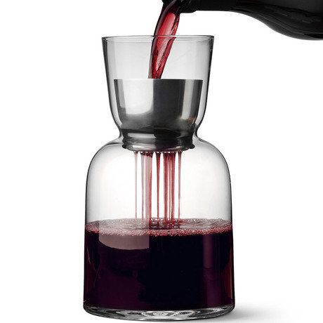 Прежде чем создать этот графин, дизайнеры сделали около двадцати прототипов, пытаясь подобрать идеальную форму, которая бы обеспечивала оптимальную аэрацию (насыщение воздухом) вина. Ведь так его вкус и аромат полностью раскрываются, позволяя насладиться напитком. Однако спектр использования графина гораздо шире: он подойдет для лимонадов, воды или соков. Специальный фильтр не даст кусочкам льда, фруктов, веточкам специй попасть в ваш бокал.