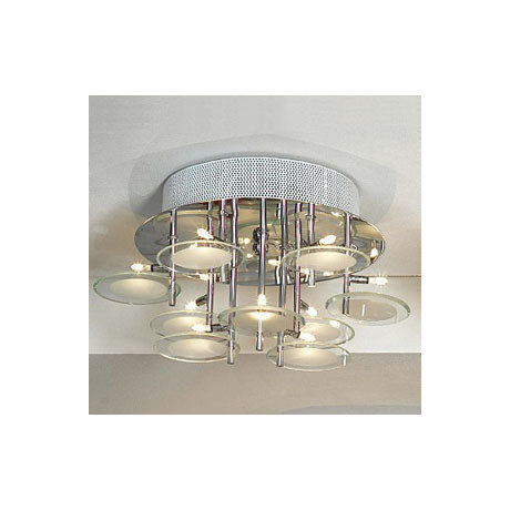 Потолочная люстра Sardara,Бренд - Lussole (Италия),Коллекция - Sardara,,Цвет плафонов и подвесок - белый с неокрашенной каймой,Цвет арматуры - хром,Тип поверхности плафонов и подвесок - матовый, прозрачный,Тип поверхности арматуры - глянцевый,Материал плафонов и подвесок - стекло,Материал арматуры - металл,. Lussole - главный эксперт в футуристическом дизайне среди производителей светильников. Накладная люстра Sardara LSQ-5907-09 подошла бы и в кабину космического корабля, но волею судьбы украсит вашу квартиру. Плоская планка-отражатель делает свет 9 галогеновых ламп еще более ярким, но в то же время мягким. Разноуровневое расположение источников света делает освещение живым, похожим на натуральное в рассветный час. Светильник совместим с любым типом потолка и может быть установлен в помещениях от 260 см высотой.