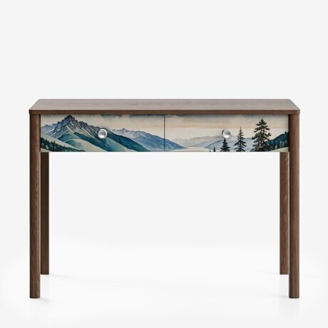 На фото рабочий стол представлена: тонировка - Дуб тобакко, принт - Горный ландшафт, ручки - В2.