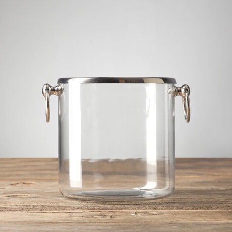 Универсальное стеклянное ведро для хранения и подачи пищевых продуктов. Оснащено двумя металлическими ручками по бокам для удобства.