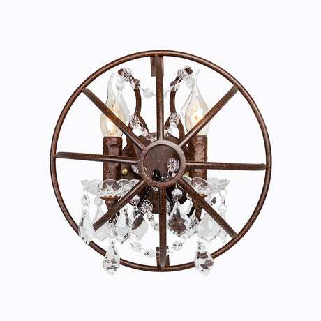 Настенный светильник «Мольер» безупречно дополнит дизайн, сформированный в классическом стиле с легкими индустриальными нотками. Хрустальные подвески гипнотизируют взгляд изяществом и дорогим блеском.