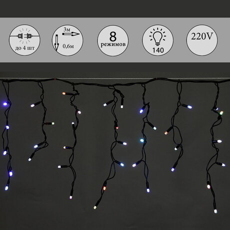 A-020 LED RGB светодиодная "бахрома" 3x0.6м 140LED черный провод влагозащ., морозостойкий