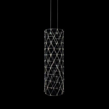 Люстра Enya D33 см L102 хром вертикальнаяСтильная люстра Enya – образец элегантности и отличного вкуса. Цилиндрическая форма стилизованного плафона идеально гармонирует с оформлением интерьера в современных стилях: хай-тек, минимализм, лофт. Множество светодиодов создает яркое и вместе с тем спокойное освещение. Светильник эффектно смотрится над обеденным столом, креслом, диваном. Может встраиваться в композиции из нескольких люстр. Воздушность модели придает каркас из тонких металлических прутков, собранных в ромбовидный узор. Можно заказать подвесной светильник в горизонтальном или вертикальном исполнении. Люстра изготавливается вручную.Цоколь:LEDЦветовая температура:3000КДиммирование:нетКоличество светодиодов:110Световой поток, lm:6600Мощность, вт:55Степень защиты:IP20Крепление:Потолочная площадка; Цанговый подвесДлина тросов:150 см