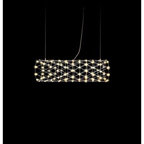 Люстра Enya D33 см L102 хром горизонтальнаяСтильная люстра Enya – образец элегантности и отличного вкуса. Цилиндрическая форма стилизованного плафона идеально гармонирует с оформлением интерьера в современных стилях: хай-тек, минимализм, лофт. Множество светодиодов создает яркое и вместе с тем спокойное освещение. Светильник эффектно смотрится над обеденным столом, креслом, диваном. Может встраиваться в композиции из нескольких люстр. Воздушность модели придает каркас из тонких металлических прутков, собранных в ромбовидный узор. Предлагается три варианта цвета нержавеющей стали: серебристый, золотистый, черный. Можно заказать подвесной светильник нужного размера, предложив свои габариты. Люстра изготавливается вручную.Цоколь:LEDЦветовая температура:3000КДиммирование:нетКоличество светодиодов:110Световой поток, lm:6600Мощность, вт:55Степень защиты:IP20Крепление:Потолочная площадка; Цанговый подвесДлина тросов:150 см
