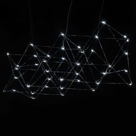 Люстра Eternal L150*50*50 хром При взгляде на этот стильный подвесной светильник в воображении рисуются далекие созвездия. Очертания люстры Eternal напоминают далекие космические объекты, что отражает название модели. Яркие светодиоды сияют подобно звездам. Замысловатая геометрия каркаса завораживает. Дизайнерский светильник создается вручную из прочных прутков нержавеющей стали. Модель гармонирует с футуристичным и минималистичным окружением, подчеркивает оригинальность лофта.Цоколь:LEDЦветовая температура:3000КДиммирование:нетКоличество светодиодов:52Световой поток, lm:3120Мощность, вт:26Степень защиты:IP20Крепление:Потолочная площадка; Цанговый подвесДлина тросов:150 см