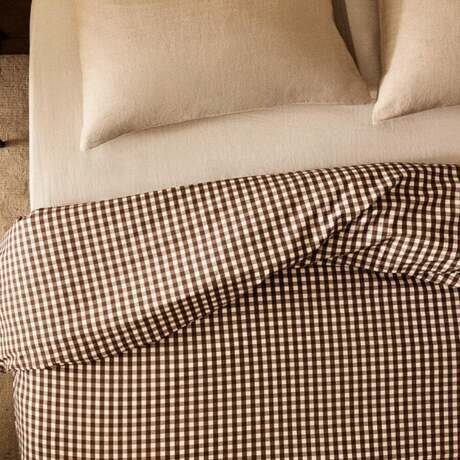 Пододеяльник из стираного хлопка с клетчатым принтом Потайная застежка на пуговицы.