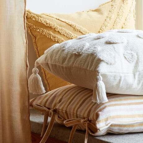 Мягкий чехол на подушку Pom с прошивным узором спереди и кисточками по углам. Чехол на подушку с застежкой-молнией внизу. Размеры: 45 х 45 см. В комплекте с синтетической внутренней подушкой 45 х 45 см.