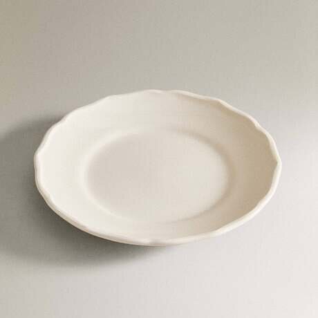 Боковая пластина из глины цвета экрю. Однотонный с декоративным рельефом по краю.