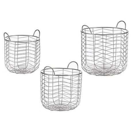 Если Вам нравится тщательно продумывать до мельчайших деталей домашнюю обстановку, при этом следя за новыми товарами, которые делают жизнь легче, приобретайте Набор корзин Серебристый Металл (3 pcs) по лучшей цене. Тип: КорзинаНабор корзинЦвет: СеребристыйРазмеры прим.: 35 x 35 x 38,5 cm30 x 30 x 35 cm40 x 40 x 42,5 cmМатериал: Металл
