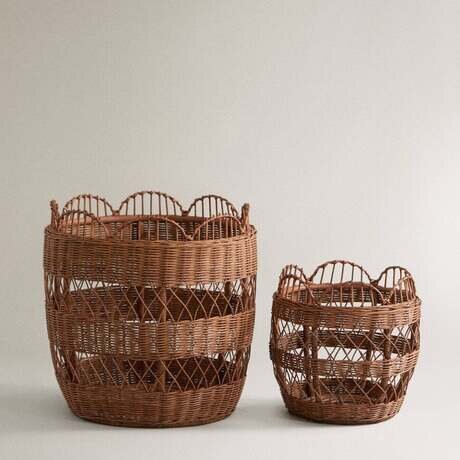 Плетеная корзина из ротанга с фестончатой отделкой.