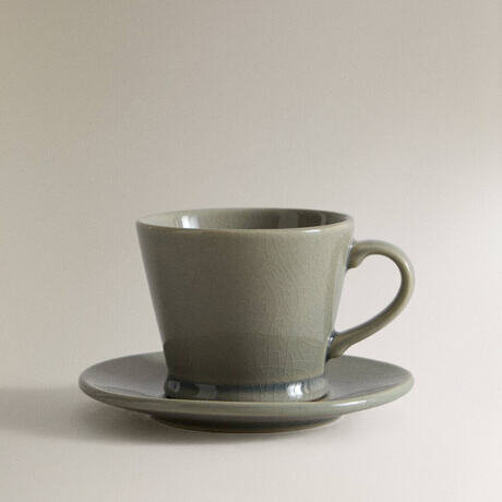 Керамическая чашка и блюдце с глазурованной отделкой.