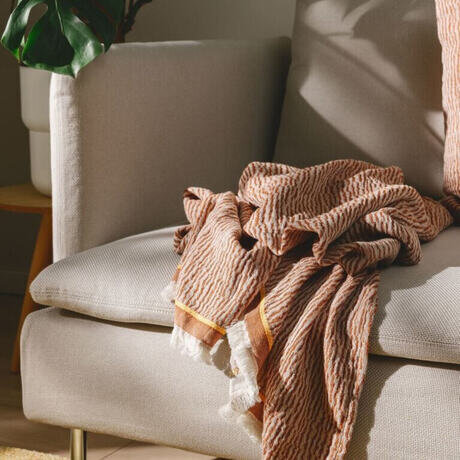 Плед Joao H&M изготовлен из высококачественного хлопка, что делает его мягким и комфортным. Он отлично вписывается в различные стили оформления и может использоваться в спальне или на диване как декоративный элемент или для отдыха.