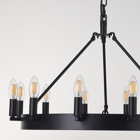 Кроме того, Citilux CL470112 имеет металлический корпус и кованое кольцо черного цвета, что придает ей дополнительную прочность и долговечность. Эта люстра также подходит для помещений с высокими потолками или вторым светом, а также для лестничных пролетов, тип крепления - крючок.