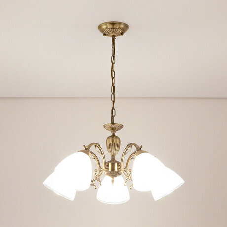 Люстра пятирожковая Citilux Латур CL413251 выполнена в классическом стиле. Корпус светильника металлический, с литыми рожками, цвет бронза. Плафоны стеклянные, полуматовые с утончённой прозрачной окантовкой. Люстра поставляется в виде комплекта для самостоятельной сборки, с подробной инструкцией. Из данного набора, можно собрать подвесную модель с плафонами, направленными вверх, дающую мягкий отраженный свет или более яркий вариант с плафонами вниз. Высота люстры на цепи 70 см, прекрасный выбор для комнат с высокими потолками. Если в помещении низкие потолки, люстру можно собрать вообще без цепи, как потолочную, высотой всего 27 см. Тип крепления к потолку – планка. Более того, на стадии сборки, вы можете подключить люстру для работы, как с одноклавишным, так и с двухклавишным выключателем. В модели используются 5 ламп с цоколем Е27 и максимальной мощностью для ламп накаливания 75Вт. Суммарная мощность 375 Вт. Светодиодные лампы можно использовать большей яркости.Citilux CL413 LATUR: Вдохновение в каждом луче.