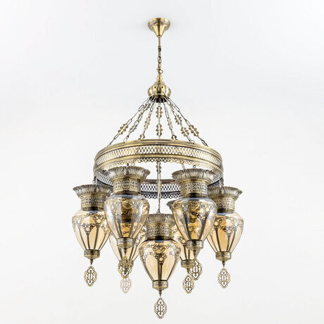 Восточная каскадная люстра Citilux Каир CL419263 с семью подвесными плафонами. Каркас металлический, цвет бронза. Плафоны в форме шара, изготовлены из прозрачного стекла медового оттенка, украшены декоративными, ажурными элементами. В изделии используются лампы с цоколем Е27, максимальной мощностью для ламп накаливания 75Вт. Светодиодные лампы можно устанавливать более яркие. Модель подходит для всех типов потолков, в том числе натяжных. Тип крепления – крючок. Люстра Каир CL419263 прекрасный вариант для атмосферного освещения интерьеров квартир и загородных домов, уютных кафе, баров и ресторанов, оформленных в восточном стиле.Citilux CL419 CAIRO: Вдохновение в каждом луче.