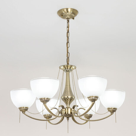 Люстра Франческа CL417263 в классическом стиле. Корпус металлический, с литыми рожками, цвет бронза. Плафоны стеклянные, полуматовые, со стильной прозрачной окантовкой. В изделии используются 6 ламп с цоколем Е27, максимальной мощностью для ламп накаливания 75Вт. Светодиодные лампы можно применять более яркие. Рассчитана на работу, как с одноклавишным, так и с двухклавишным выключателем. Подходит для всех типов потолков, в том числе натяжных. Тип крепления – планка. Диаметр 63см, высота регулируется от 33см до 73см, осветит около 19м².Citilux CL417 FRANCESCA: Вдохновение в каждом луче.