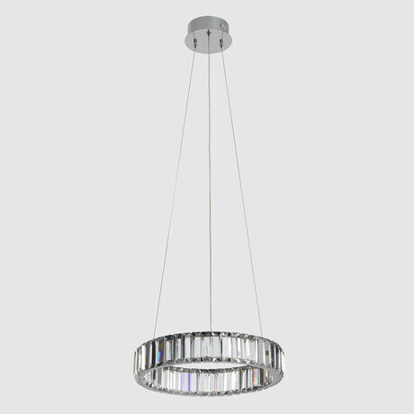 Хрустальная светодиодная люстра Citilux Чезаре CL338141 истинное произведение искусства, которое не оставит равнодушными даже самых требовательных ценителей красоты. Основание круглой формы, цвет хром. Хрустальное кольцо на металлическом каркасе, подвешено на элегантных тросиках и словно парит в воздухе. Хрустальные элементы являются воплощением кристальной прозрачности и современной огранки, они играют сияющими отблесками света и создают неповторимую атмосферу роскоши и элегантности.