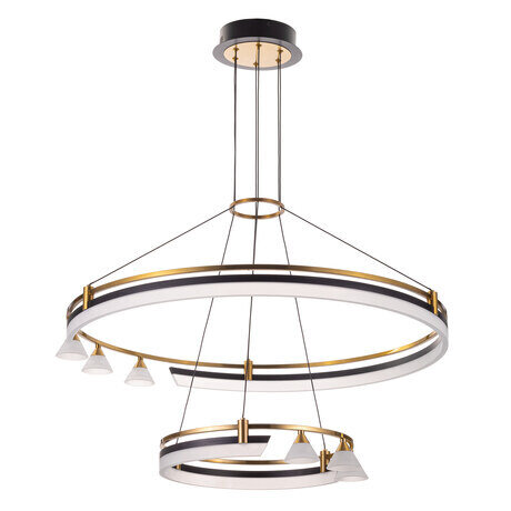 Подвесная светодиодная кольцевая люстра Citilux HELLY CL211092 является ярким примером элегантного сочетания современных технологий и изысканного дизайна. Корпус выполнен из металла, удачно сочетая благородный оттенок бронзы с глубоким чёрным цветом, что придаёт люстре стильный и утончённый вид. Оптический полимерный рассеиватель обеспечивает равномерное и мягкое освещение, создавая уютную атмосферу в любом помещении. Асимметрично расположенные плафоны подчёркивают оригинальный дизайн модели.