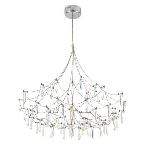 Подвесная люстра Citilux ASTER CL208020 яркий пример утончённого стиля и функциональности. Ажурный каркас собран из изящных полированных проволочных элементов. Миниатюрные светодиодные модули равномерно распределены по всему объёму люстры. Модель искусно украшена кристально прозрачными хрустальными подвесками.