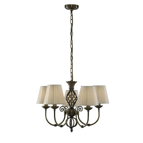 люстра подвесная в классическом стиле. Ажурное основание выполнено в стилистик ковки, абажуры из ткани мягко рассеивают свет ламп