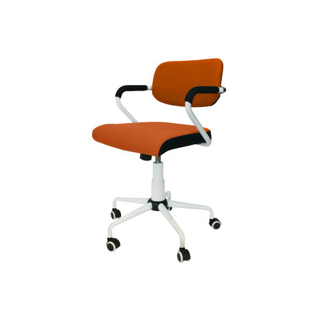 Стул рабочий вращающийся с регулятором высоты и подлокотниками. Спинка и сиденье выполнены из высококачественного пластика, с мягкой подушкой. Спинка стула может наклоняться от давления веса тела. Металлическое основание с 5 колесами придает дополнительн...