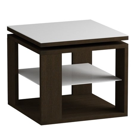 Комплектация - С полками, Вес - 31, Высота - 52.5, Глубина - 60, Ширина - 60, Тип - Журнальный, Цвет каркаса - Венге, Цвет столешницы - Белый, Материал каркаса - ЛДСП, Материал столешницы - Стекло, Форма - Квадратный.