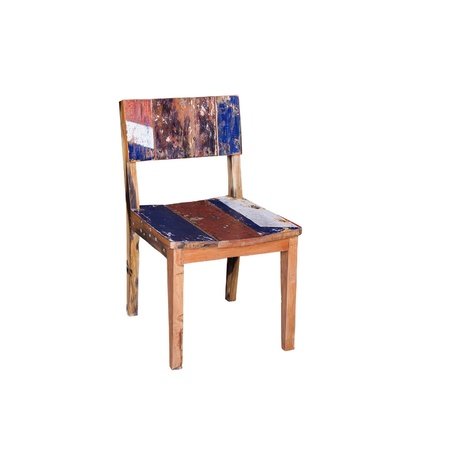Стул выполнен из массива древесины старого рыбацкого судна, такой как: тик, махогон, суар, с сохранением оригинальной многослойной окраски. Сборка не требуется.