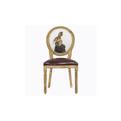 Это не стул. Это ядреная смесь романтичного винтажа, французской роскоши и поп-арта. В центре внимания – овальная спинка-медальон с изображением экстравагантной зайки в старинном бальном платье. Ножки и основание стула выточены из цельной древесины и вручную покрыты филигранной резьбой, а для пущего эффекта – искусственно состарены и выбелены. Тканевая обивка пропитана специальным составом, который не только повышает прочность и долговечность материи, но и делает ее стойкой к загрязнениям. Обивка сиденья – эко-кожа. Вес – 7 кг.