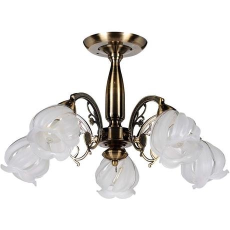 Назначение светильника: для гостиной, Стиль светильника: модерн, Материал светильника: металл, стекло, Длина (мм): 660, Ширина: 660 мм, Высота: 230 мм, Количество ламп: 5 шт, Тип лампы: накаливания, Мощность: 60 Вт, Патрон: Е14, Цвет арматуры: золото