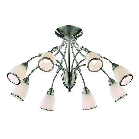 Назначение светильника: для гостиной, Стиль светильника: модерн, Тип: потолочная, Материал светильника: металл, стекло, Диаметр: 710 мм, Высота: 390 мм, Количество ламп: 8 шт., Тип лампы: накаливания, Мощность: 40 Вт, Патрон: Е14, Цвет арматуры: матовый никель