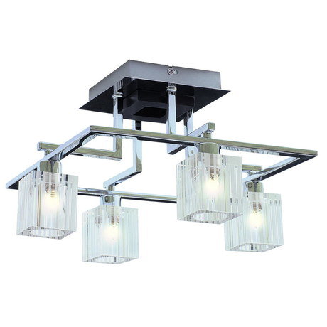 Назначение светильника: для гостиной, Стиль светильника: модерн, Тип: потолочная, Материал светильника: металл, дерево, стекло, Длина: 345 мм, Ширина: 345 мм, Высота: 215 мм, Количество ламп: 4 шт, Тип лампы: галогенные и светодиодные, Мощность: 40 Вт, Патрон: G9, Пульт ДУ: нет, Цвет арматуры: хром/венге
