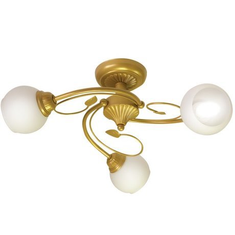Назначение светильника: для комнаты, Стиль светильника: модерн, Тип: потолочная, Материал светильника: металл, стекло, Диаметр: 540 мм, Высота: 210 мм, Количество ламп: 3 шт, Тип лампы: накаливания, Мощность: 60 Вт, Патрон: Е14, Цвет арматуры: золото