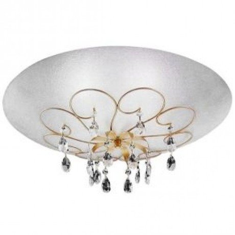 Назначение светильника: для комнаты, Стиль светильника: модерн, Материал светильника: металл, стекло, Диаметр: 500 мм, Высота: 230 мм, Количество ламп: 5 шт, Тип лампы: накаливания, Мощность: 40 Вт, Патрон: Е27, Пульт ДУ: нет, Цвет арматуры: золото