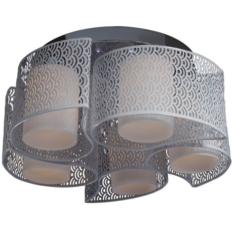 Назначение светильника: для комнаты, Стиль светильника: модерн, Материал светильника: металл, стекло, Диаметр: 450 мм, Высота: 205 мм, Количество ламп: 6 шт, Тип лампы: накаливания, Мощность: 40 Вт, Патрон: Е27, Цвет арматуры: хром