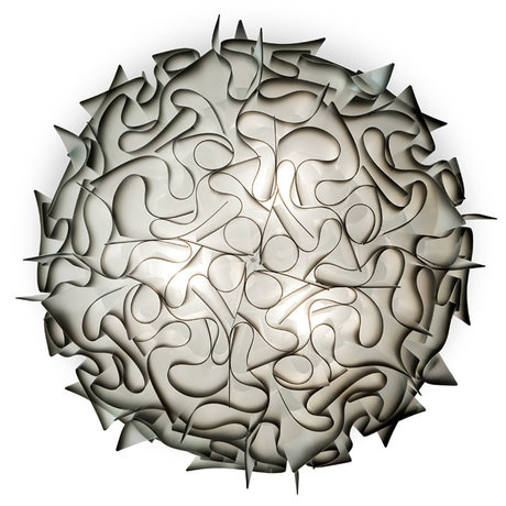 Потолочный светильник VELI LARGE с оригинальным дизайном. Плафон белого цвета с черными элементами выполнен из необычного материала под названием OPALFLEX. Это эксклюзивный запатентованный материал, получаемый путем смешивания технополимеров и стеклянных волокон. Этот материал придает светильникам SLAMP прозрачность стекла, гарантируя в то же время прочность и универсальность. Светильник может использоваться как настенный. Дизайн: Adriano Rachele.